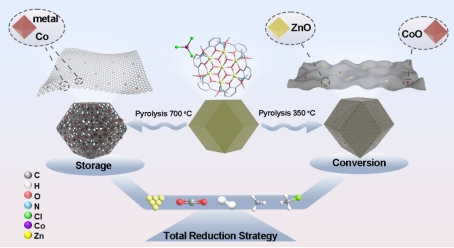 鉴于此,yl9193永利集团彭旭副教授与微电子学院李岳彬教授提出了一种全还原策略,通过在惰性气体热解诱导产生多种还原性气体,进而降低材料的价态;不仅如此,该过程发生了结构的演变,从而实现目标产物从电化学析氧到电化学储能的转变。