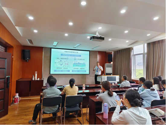 徐吉静教授此次报告的题目为“金属空气电池关键材料”,报告内容主要介绍以提高固态电解质稳定性为导向,研发基于多孔材料的新型固态电解质,提出“多孔材料基固态电解质”新概念,揭示锂离子“分子孔道传输”机制,解决液态金属-空气电池中电解液挥发/分解和固态电池中电解质稳定性差的难题,构筑高安全、高稳定固态金属-空气电池器件;其次还提出“外场辅助”提升金属-空气电池反应动力学的新策略,开发多种“外场辅助”空气正极材料,揭示外场增强正极反应动力学机制,构筑高性能外场辅助金属-空气电池器件。会议最后,我院师生踊跃提问,积极向徐吉静教授请教,现场气氛热烈。我院师生纷纷表示,通过本次学术交流会,不仅学习了相关领域的知识,还开拓了学术视野,受益匪浅。