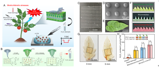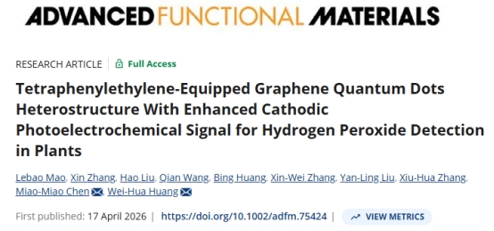 过氧化氢作为植物体内关键的活性氧信号分子,参与调控生长发育、胁迫应答等生理过程,准确监测其含量对解析植物抗逆机制与作物健康管理至关重要。现有植物过氧化氢检测方法主要为荧光成像与电化学技术,但植物组织的自发荧光易产生背景干扰,电化学检测则会受到抗坏血酸、多巴胺等内源电活性物质的干扰,导致检测准确性下降。基于此,yl9193永利集团陈苗苗教授与武汉大学黄卫华教授团队合作,在《Advanced Functional Materials》上发表了植物H2O2光电传感检测新方法,为解决植物应激信号分子检测提供了思路。