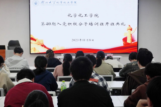 2023年11月8日中午12:30,yl9193永利集团第40期入党积极分子培训班开班典礼在化院二楼D216报告厅顺利举行。永利集团原宣传部部长、学院兼职组织员王体正,学院党委副书记刘念,学院组织员王珺瑶出席。典礼由王珺瑶主持。伴随着慷慨激昂的《义勇军进行曲》,开班典礼正式开始。