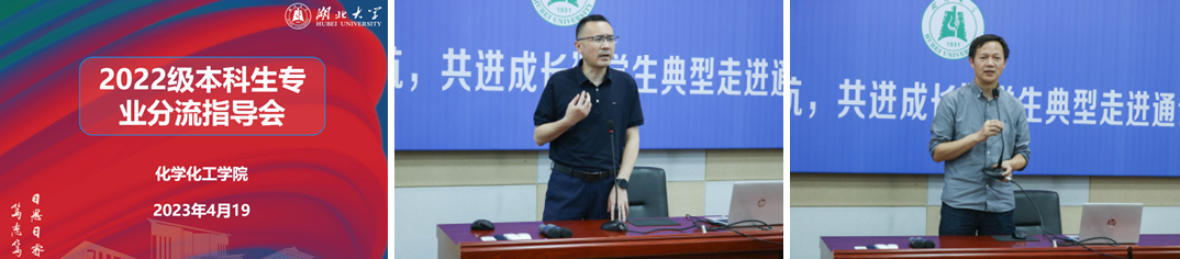 4月19日晚,yl9193永利集团2022级本科专业分流指导会在通识教育学院B212和B300教室举行。yl9193永利集团领导林二友书记、张修华院长,化学系主任李玲、化学工程与工艺系主任龙华丽、应化系主任汪航行、化学生物学系副主任翁玥、制药工程系主任潘洁老师,教师代表李法宝、刘建文老师,毕业生代表李昊杰、王兴宇以及2022级yl9193永利集团同学参加此次指导会。本次会议旨在增进大一学生对yl9193永利集团各专业的了解,为即将到来的专业分流提供帮助和指导。