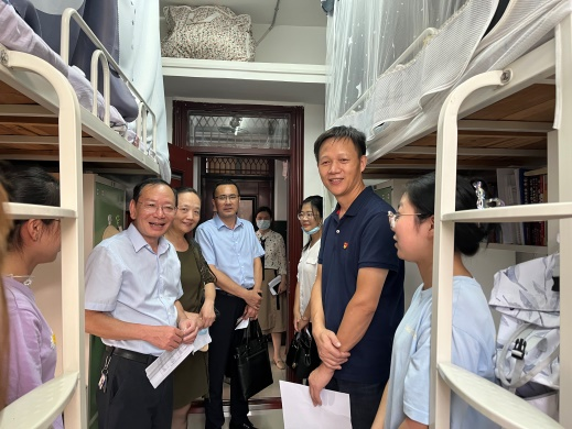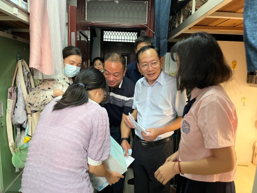 随后,副校长王世敏、资产经营有限公司领导班子、院党委书记林二友、院长张修华、院党委副书记刘念、副院长文为、辅导员与班主任代表一同前往普宿七栋看望我院学子。王世敏校长十分关心学生的生活条件与学习状况,对不同学科专业的学生均提出了有针对性的学业建议,鼓励同学们努力学习、不负韶华、不负时代重托。