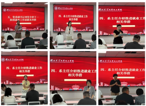 毕业班班主任聚焦未就业学生群体,逐一对学生求职困难原因进行“画像式”分析,并提出“一对一”帮扶计划,强调通过心理疏导、岗位推荐、技能培训等方式打破就业瓶颈。各系主任立足学科特点,介绍了推进就业的特色举措,如前置就业指导、动态追踪学生试用期表现等。最后,学院党委副书记刘莹立足于“坚持抓细、坚持抓紧、坚持抓实”介绍了下一阶段就业工作思路与举措,并号召全体师生凝心聚力,共同为学生高质量就业保驾护航。
