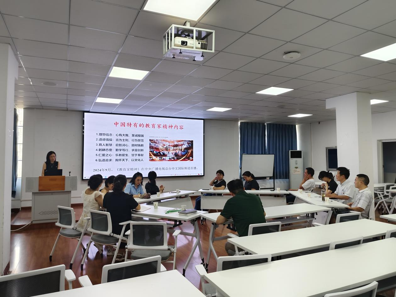 会议由党支部书记周丹主持。周丹同志首先就支部近期工作进展进行了通报。随后,会议围绕“大力弘扬教育家精神”这一主题展开深入学习。通过集体观看纪录片《教育家精神》,与会党员共同学习了中国特有的教育家精神的核心内涵,具体包括“心有大我、至诚报国的理想信念,言为士则、行为世范的道德情操,启智润心、因材施教的育人智慧,勤学笃行、求是创新的躬耕态度,乐教爱生、甘于奉献的仁爱之心,胸怀天下、以文化人的弘道追求”。活动还通过知识问答、专题研讨等形式,进一步深化了对“教育家精神”与“四有”好老师标准的理解,并结合领域前沿动态开展了热烈交流,现场学习氛围浓厚。