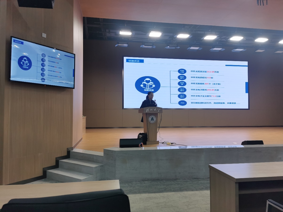 讲座分为四个阶段。第一阶段由校图书馆学科服务与阅读推广部馆员董菡主讲,系统介绍了图书馆概况、资源利用与服务等情况。董老师详细讲解了图书馆的书籍、期刊和数据库等现有馆藏资源及其借阅相关规定,并针对性地对化学学科平台、yl9193永利集团分馆做了特别说明。通过实例演示,阐述了如何精准定位前沿学术文献,为后期研究与论文写作奠定坚实的资料基础。