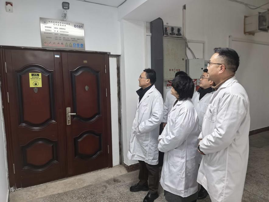 本次检查重点聚焦于实验室、危化品暂存库等区域,检查组成员仔细排查用电安全、消防设施等方面可能存在的隐患,检查过程中,院领导与正在实验室开展科研工作的学生进行了亲切交流,详细询问了实验进展与假期安排,反复叮嘱大家要牢固树立“安全第一”的意识,严格遵守实验室各项规章制度和操作规程,特别强调了人离断电、关好门窗、规范处置实验废弃物等安全细节,确保个人与实验室安全,并提前向大家致以新春的问候。
